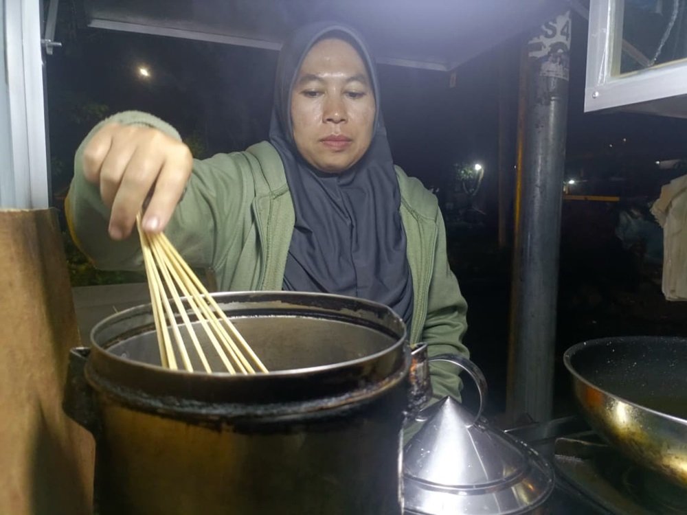 Another vendor, Yeni, runs a small cilok outlet on a consignment basis for a culinary company based in Tulungagung.